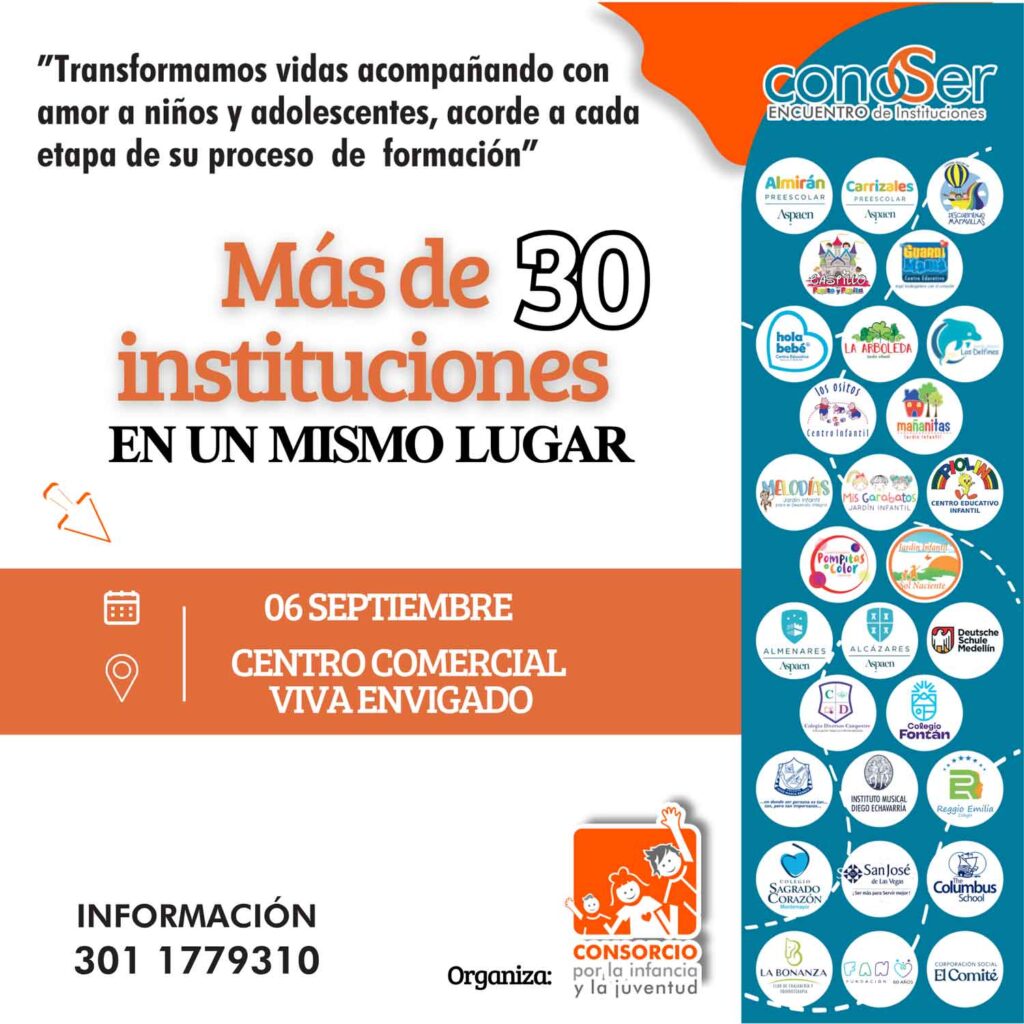 ConoSer es una feria educativa que reúne colegios, Centros educativos, fundaciones asociadas al consorcio por la infancia y la Juventud , con el propósito de brindar a las familias un espacio integral para conocer y seleccionar la oferta educativa y formativa más adecuada para sus hijos e hijas.